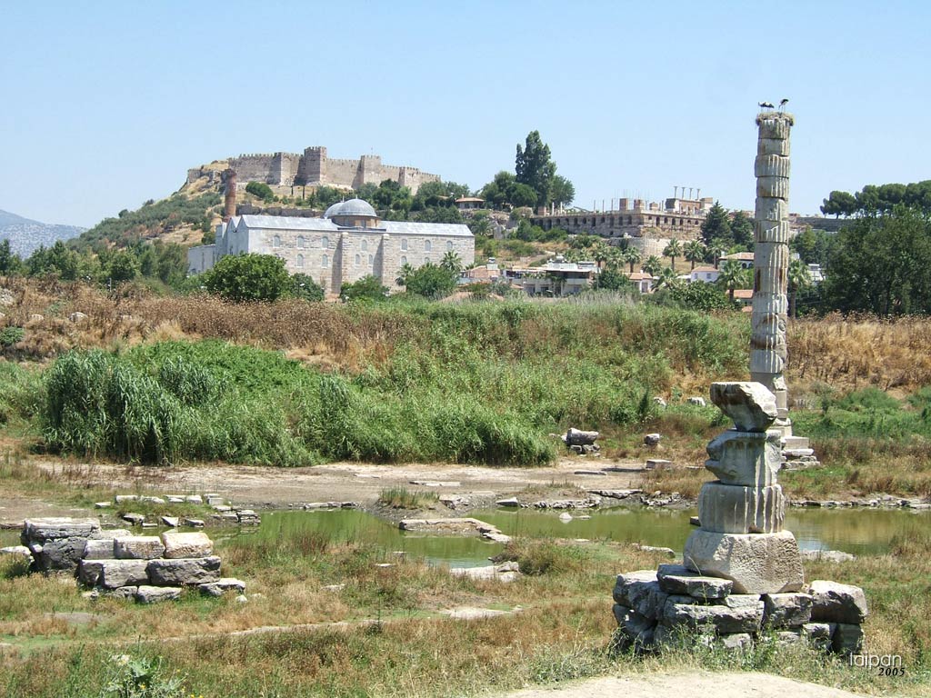 Kolumienka œwiątyni Artemidy w Efezie, w oddali znajduje się bazylika i grobowiec œw. Jana