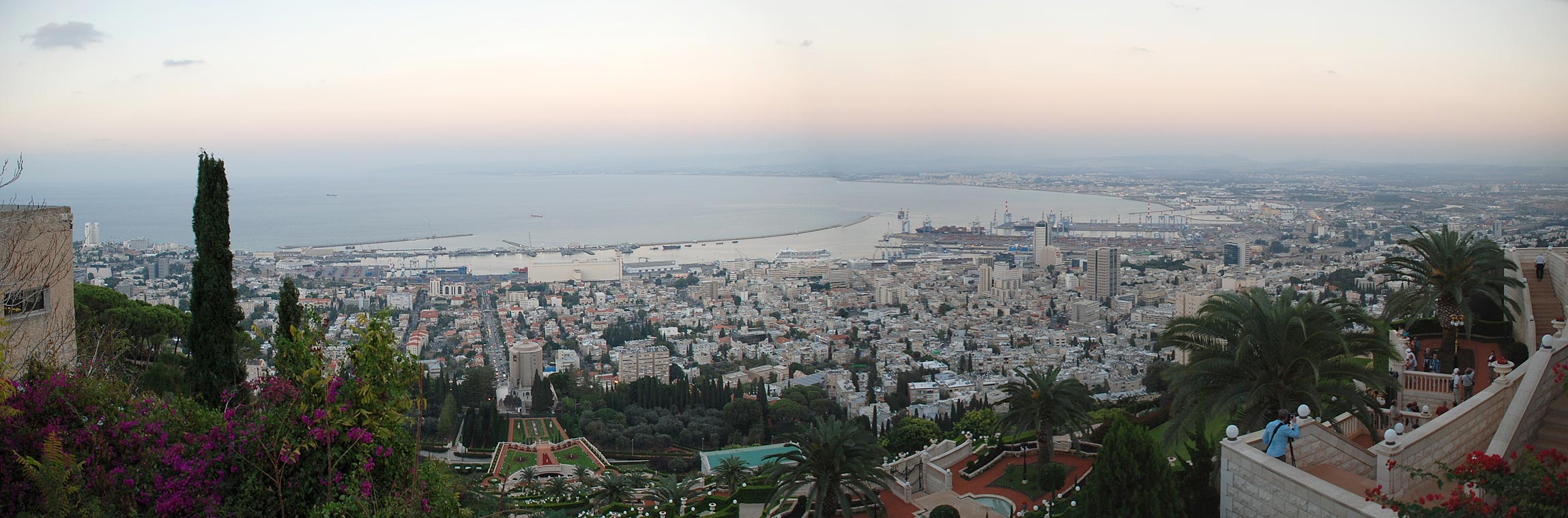 Hajfa - Góra Karmel i ogrody - panorama portu Hajfy - w tle Morze Śródziemne