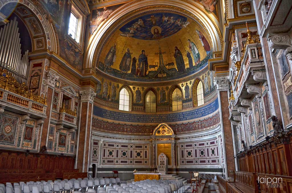 Bazylika papieska św. Jana na Lateranie (Basilica di San Giovanni in Laterano) przy Piazza di San Giovanni in Laterano - apsyda z bogatą złotą mozaiką