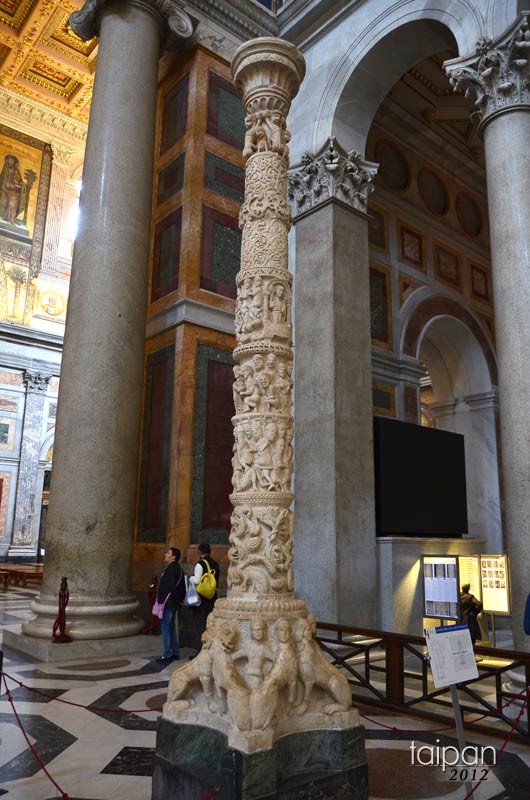 Bazylika papieska św. Pawła za Murami (Basilica di San Paolo fuori le Mura) przy Via Ostiense - imponujący świecznik paschalny w pobliżu ołtarza głównego