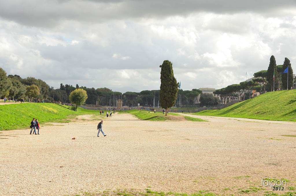 Pozostałości po Circus Maximus - największym stadionie starożytnego Rzymu, gdzie odbywały się głównie wyścigi rydwanów. Mógł pomieścić 250.000 widzów. Obecnie posiada długość 600 m i szerokość 200 m.