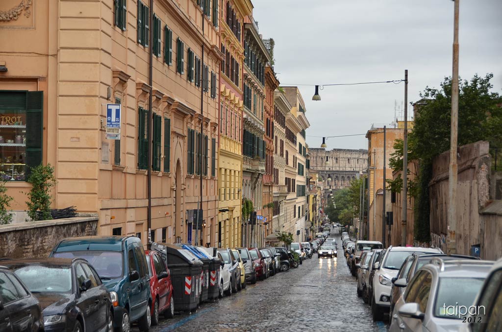 Koloseum - wybudowany w 80 roku na rozkaz cesarza Wespazjana największy amfiteatr Rzymu, mieszczący 73000 widzów, zapewniający w starożytności rozrywkę dla tłumów w postaci walk gladiatorów i dzikich zwierząt. Na zdjęciu widok od strony Lateranu i Via di San Giovanni in Laterano