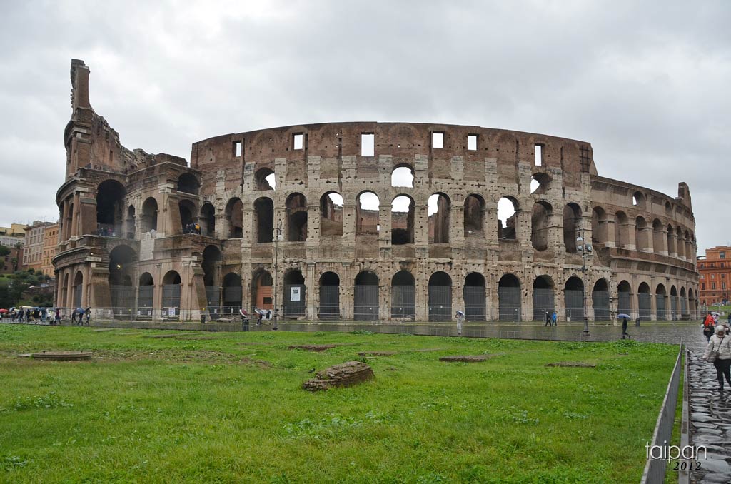 Koloseum - wybudowany w 80 roku na rozkaz cesarza Wespazjana największy amfiteatr Rzymu, mieszczący 73000 widzów, zapewniający w starożytności rozrywkę dla tłumów w postaci walk gladiatorów i dzikich zwierząt