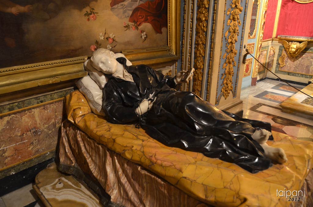 Kościół św. Andrzeja na Kwirynale (Chiesa di Sant'Andrea al Quirinale) przy Via del Quirinale - rzeźba autorstwa Pierre Legrosa przedstawiająca św. Stanisława Kostkę na łożu śmierci