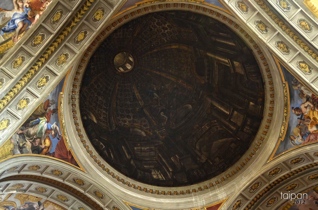Kościół św. Ignacego (Chiesa di Sant'Ignazio di Loyola in Campo Marzio) przy Piazza di Sant'Ignazio - kopuła świątyni wygląda jak prawdziwa, podczas gdy jest to złudzenie - iluzjonistyczne malowidło na sklepieniu kościoła