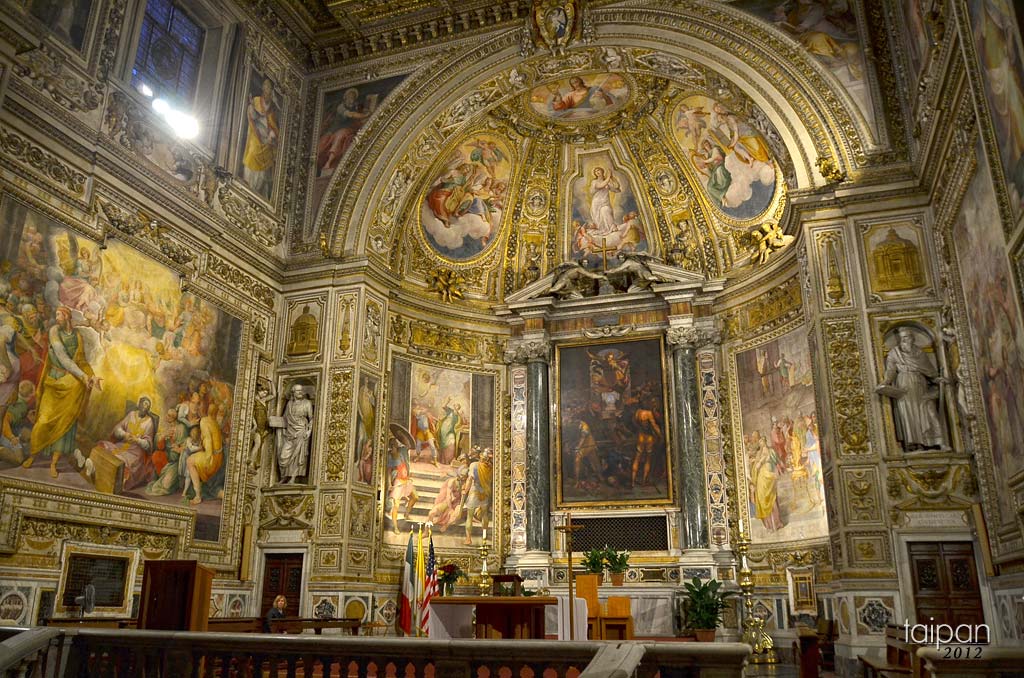 Kościół św. Zuzanny przy Termach Dioklecjana (Chiesa di Santa Susanna alle Terme di Diocleziano) przy Via XX Setembre - kościół zbudowany na początku XVII w., który upamiętnia miejsce męczeństwa Zuzanny, która została oskrażona fałszywie o cudzołóstwo przez podglądajacych ją podczas kąpieli starców. Na zdjęciu pokazany jest bogato zdobiony ołtarz.