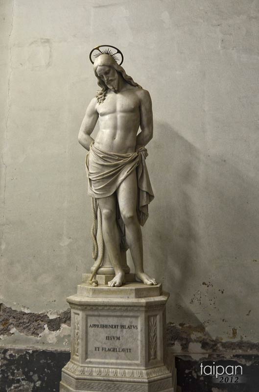 Scala Santa (Święte Schody) i Sancta Sanctorum przy Piazza di San Giovanni in Laterano - w pobliżu Bazyliki papieskiej św. Jana na Lateranie znajduje się budynek, w środku którego umieszczono Święte Schody. Na zdjęciu znajduje się rzeźba Chrystusa stojąca obok schodów.