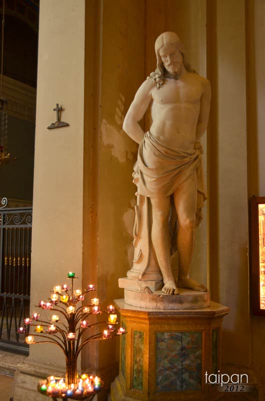 Kościół Trinita dei Monti (Chiesa della Trinita dei Monti) przy Piazza della Trinita dei Monti, w pobliżu Schodach Hiszpańskich - kościół wybudowany przez Francuzów w XVI w. Na zdjęciu widoczna jest delikatna rzeźba Chrystusa.