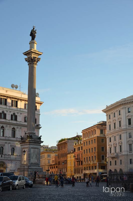 Piazza di Santa Maria Maggiore - plac przy Bazylice Papieskiej o tej samej nazwie, na placu znajduje się kolumna z figurą Madonny z Dzieciątkiem, pochodząca z bazyliki Konstantyna na Forum Romanum
