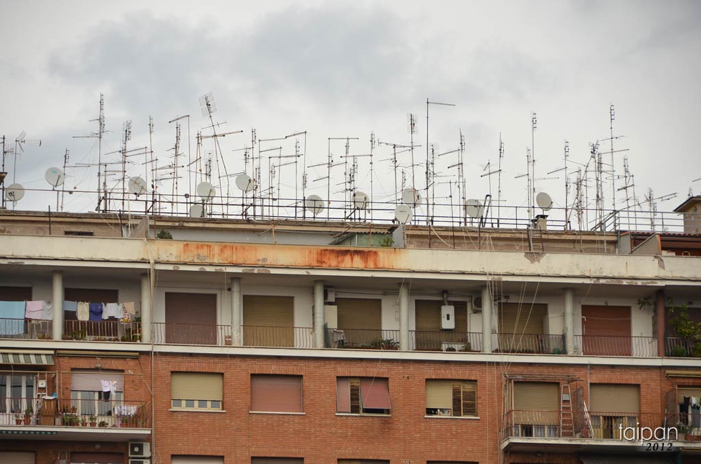 Anteny telewizyjne na dachu jednego z budynków