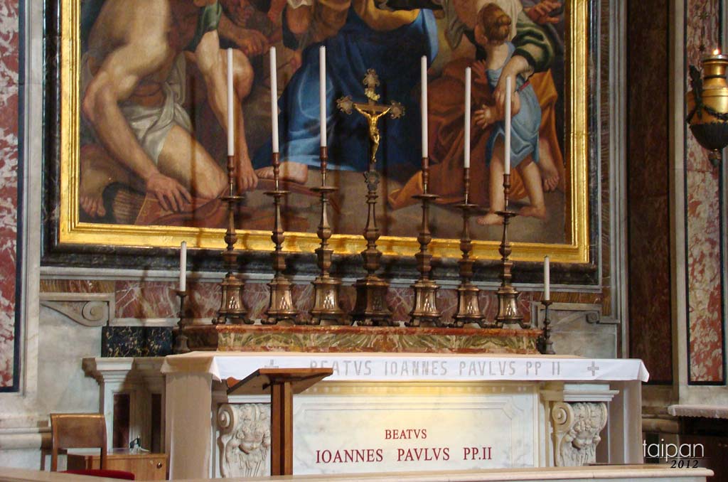Grób błogosławionego Jana Pawła II w kaplicy św. Sebastiana w Bazylice św. Piotra w Watykanie