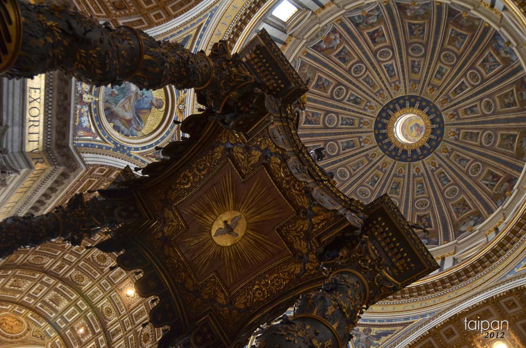 Baldachim Berniniego wykonany na zamówienie Urbana VIII z 1633 roku, nad którym znajduje się główna kopuła Bazyliki św. Piotra
