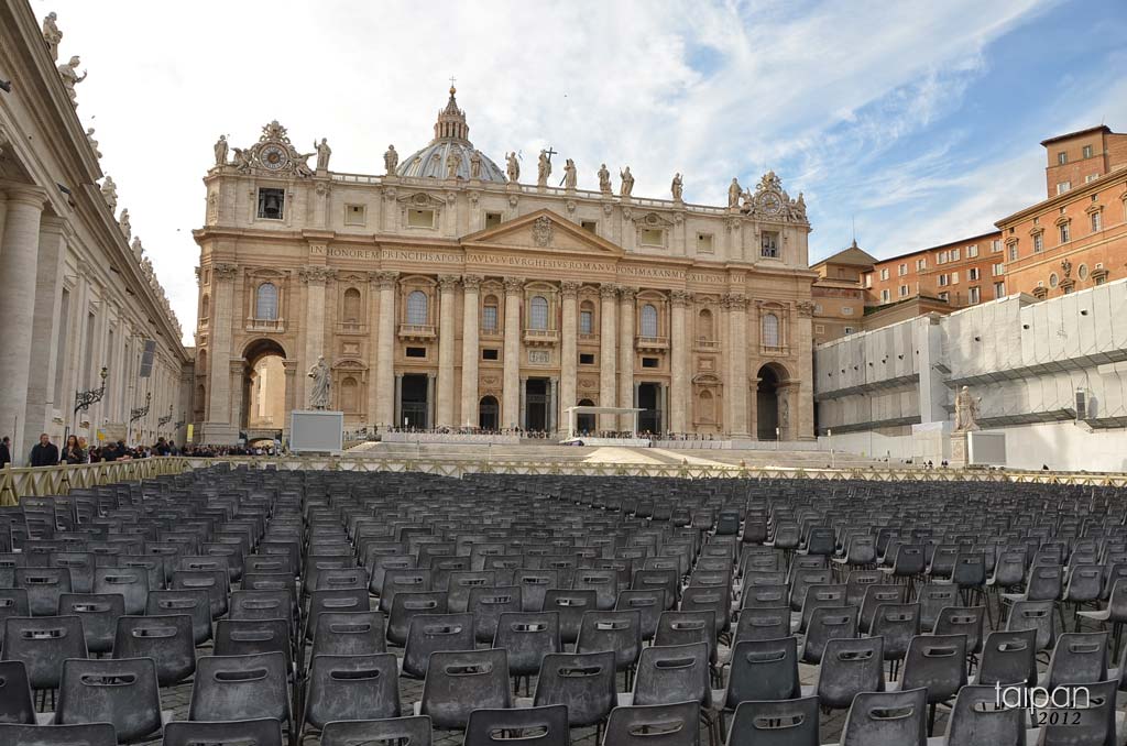 Krzesełka przygotowane do środowej papieskiej audiencji przy Bazylice św. Piotra