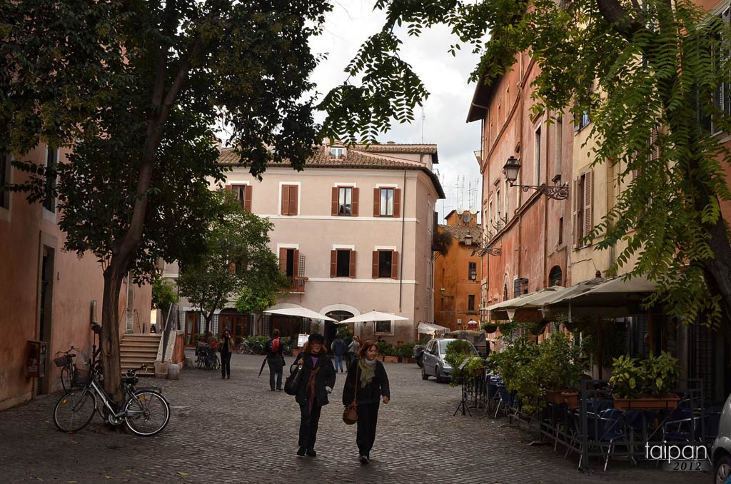 Zatybrze (Trastevere) - uznawana za najstarszą część Rzymu, położona po zachodniej stronie Tybru. Jest to dosyć klimatyczne miejsce, z wieloma dobrymi restauracjami.