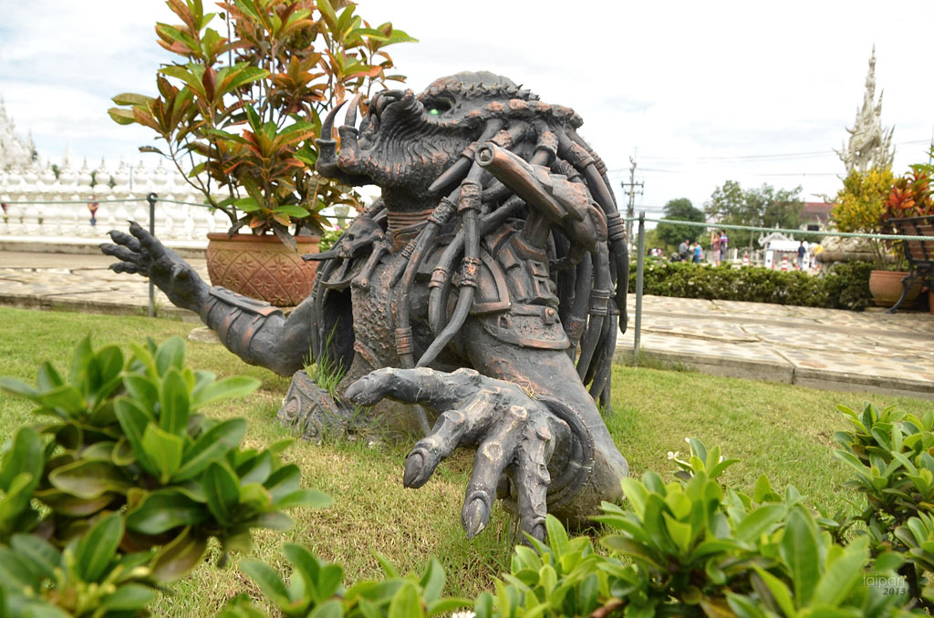 W pobliżu świątyni znajdują się dziwne rzeźby. Na zdjęciu próbujący się wydostać z ziemi Predator.