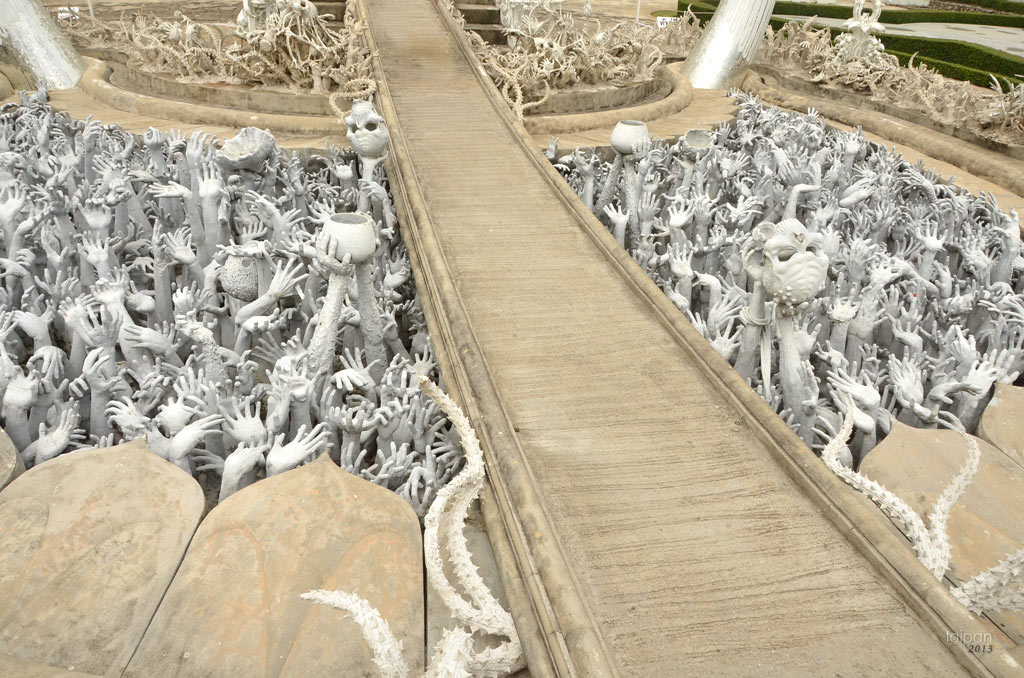Wat Rong Khun zwana przez turystów Białą Świątynią (White Temple) w Chiang Rai jest jedną z najpiękniejszych w Tajlandii. Jest to świątynia buddyjska łącząca również w sobie elementy surrealistyczne. Jej budowa została rozpoczęła się w 1997 roku i trwa do dzisiaj. Główny budynek jest cały pomalowany na biało co ma symbolizować czystość Buddy, pokryty jest również mozaiką z luster błyszczących w Słońcu. Wokół kompleksu znajdują się dziwaczne rzeźby demonów, odciętych głów czy postaci z filmów. Żeby wejść do świątyni należy przejść przez most, który zaczyna się od wyciągniętych z ziemi ramion, co może symbolizować pragnienie. Dalej znajdują się strażnicy, którzy strzegą świątyni. Po moście można iść tylko w jedną stronę, nie można się wracać, co oznacza, że z nieba już nie ma powrotu. W środku świątyni znajdują się malowidła nie Buddy, ale fikcyjnych postaci z filmów, takich jak Batman, Superman, Predator a nawet Neo z Matrixa.
