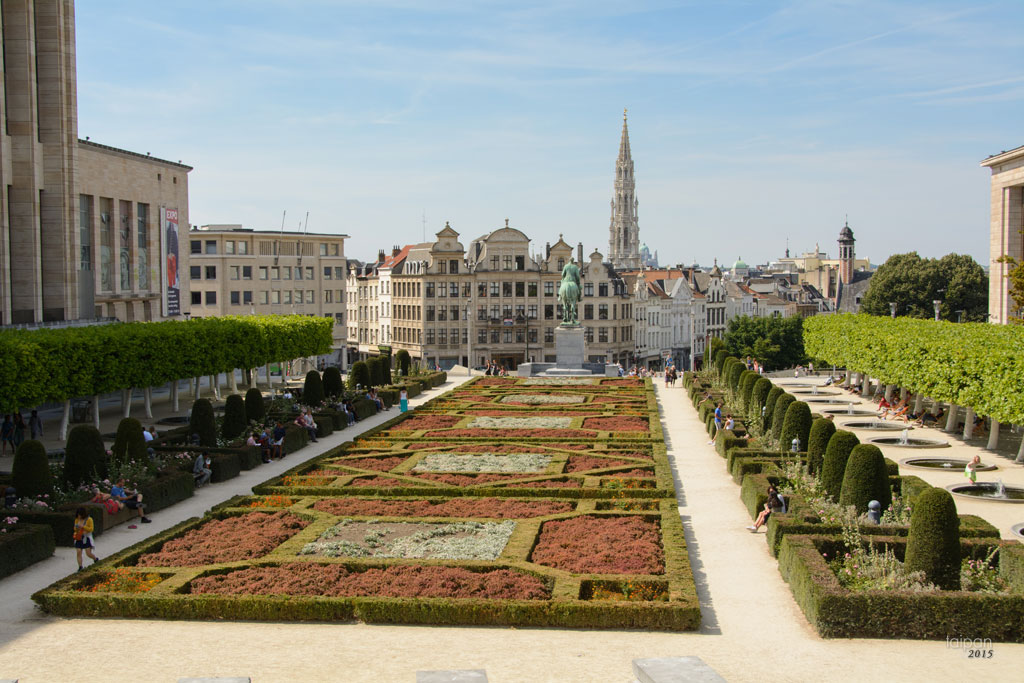 Mont des Arts Garden z pięknymi ogrodami i widokiem na ratusz
