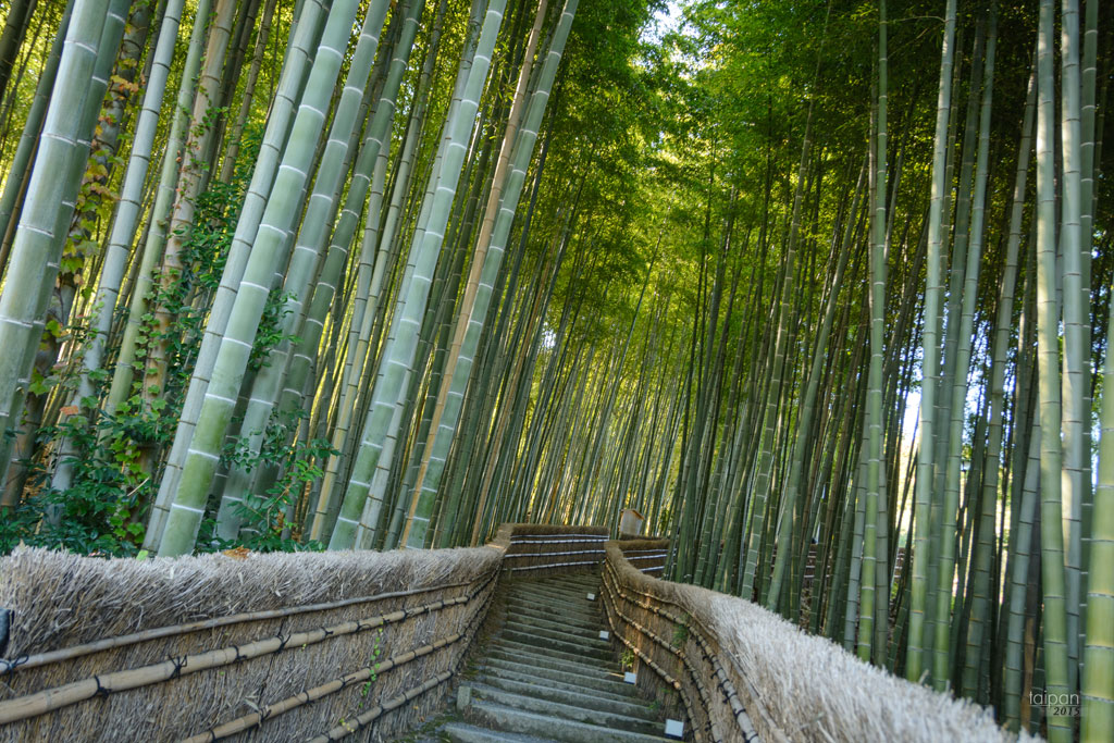 Piękny las bambusowy w świątyni Adashino Nenbutsuji