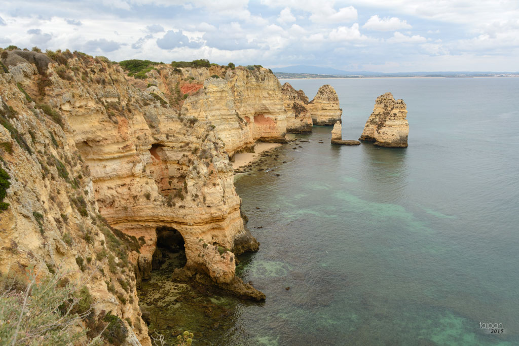 Piaskowe skały na południu miasta Lagos na przylądku Ponta da Piedade
