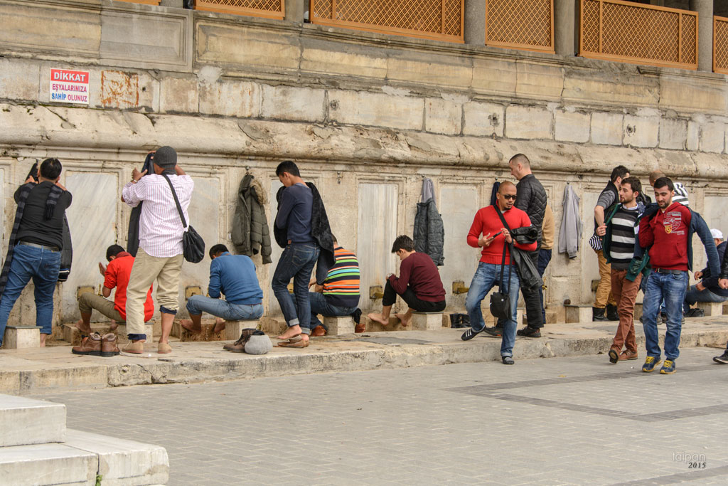 Rytuał obmywania stóp przed wejściem do meczetu.