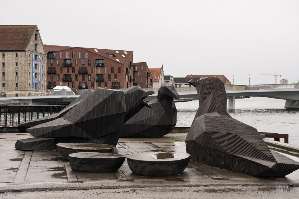 Papiroen - pomnik trzech gołębi przy Copenhagen Street Food