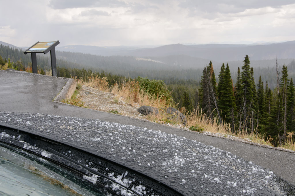 Podczas podróży spadł śnieg. Park narodowy Yellowstone