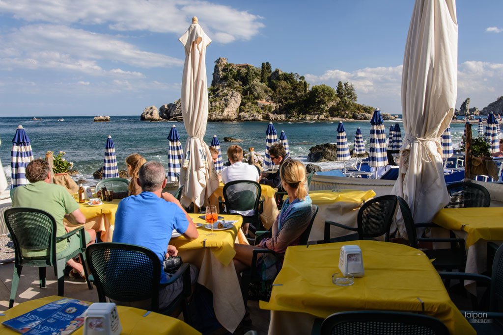 Plaża w Taorminie z wyspą Isola Bella po środku