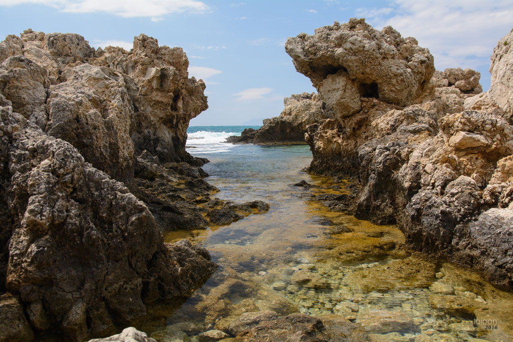 Poszarpane przez morskie fale skały. Na końcu cypla w mieście Milazzo znajduje się ciekawe formacje skalne
