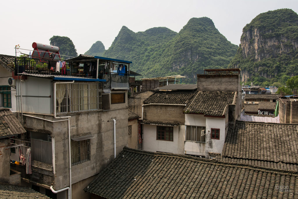 Widok z okna hotelu w Yangshuo
