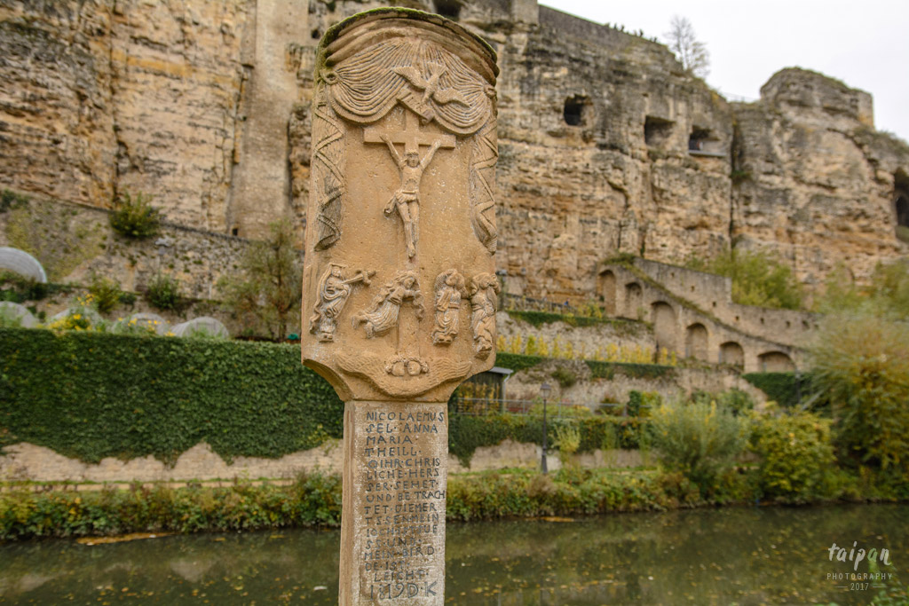 Krzyż przy opactwie Neumünster, a w tle kazamaty