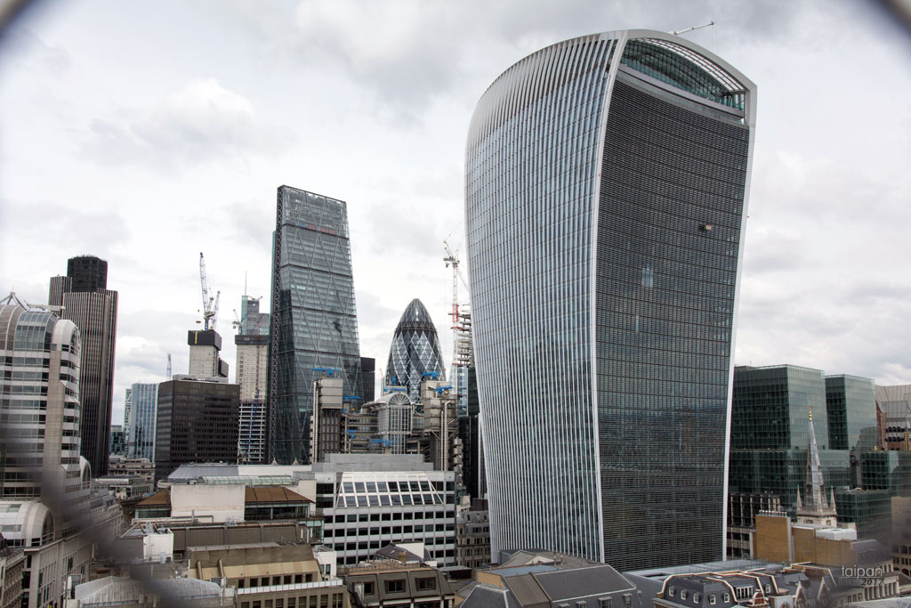 Finansowe centrum Londynu i wieżowce: Tarka do sera, Ogórek i Walkie-Talkie. Z wieżowcem Walkie-Talkie związana jest ciekawa historia. Szklana elewacja budynku skupiła promienie słoneczne i stopiła częściowo w ten sposób zaparkowanego obok luksusowego Jaguara. Po tym incydencie budynek został zabezpieczony przed odbijaniem promieni słonecznych.