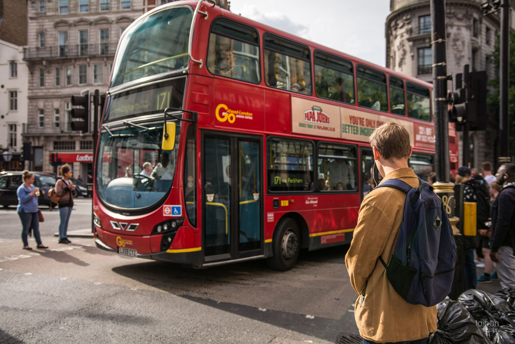 Czerwony autobus w pobliżu Trafalgar Square