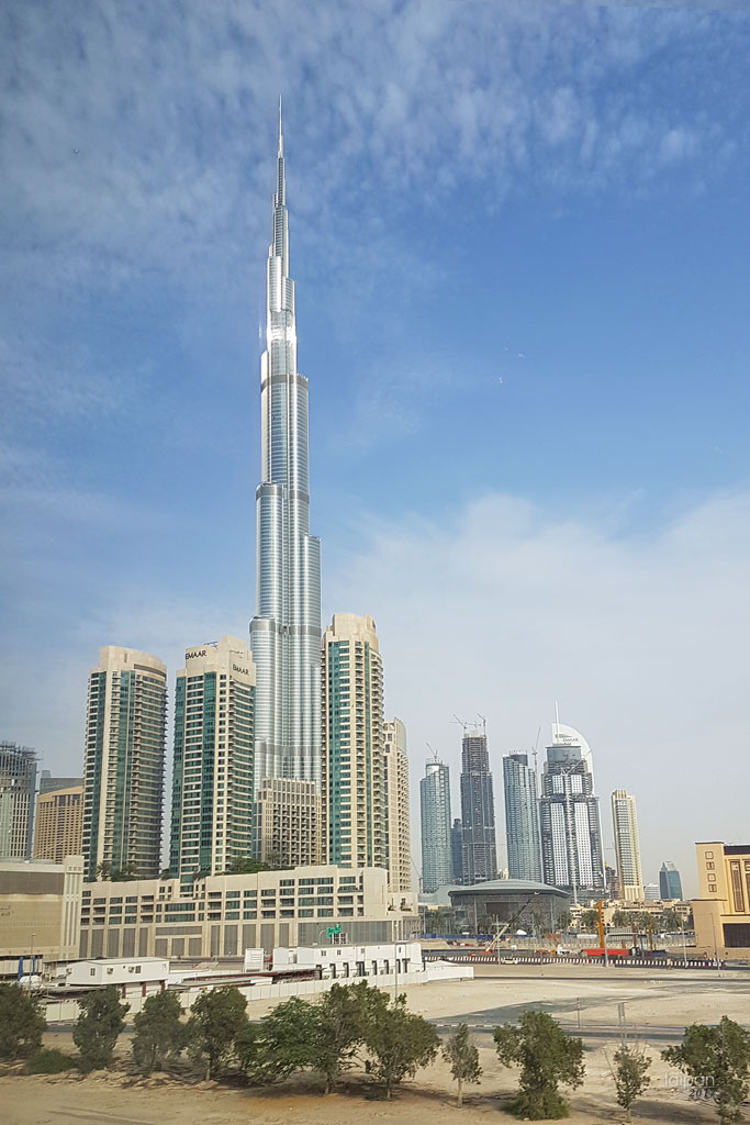 Burj Khalifa - najwyższa budowla na świecie o wysokości całkowitej 829 m. Widok z metra.