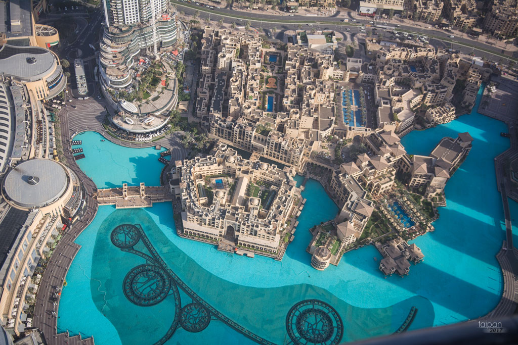 Fontanny w Dubaju widziane ze 125 piętra (456 m) tarasu widokowego w Burj Khalifa