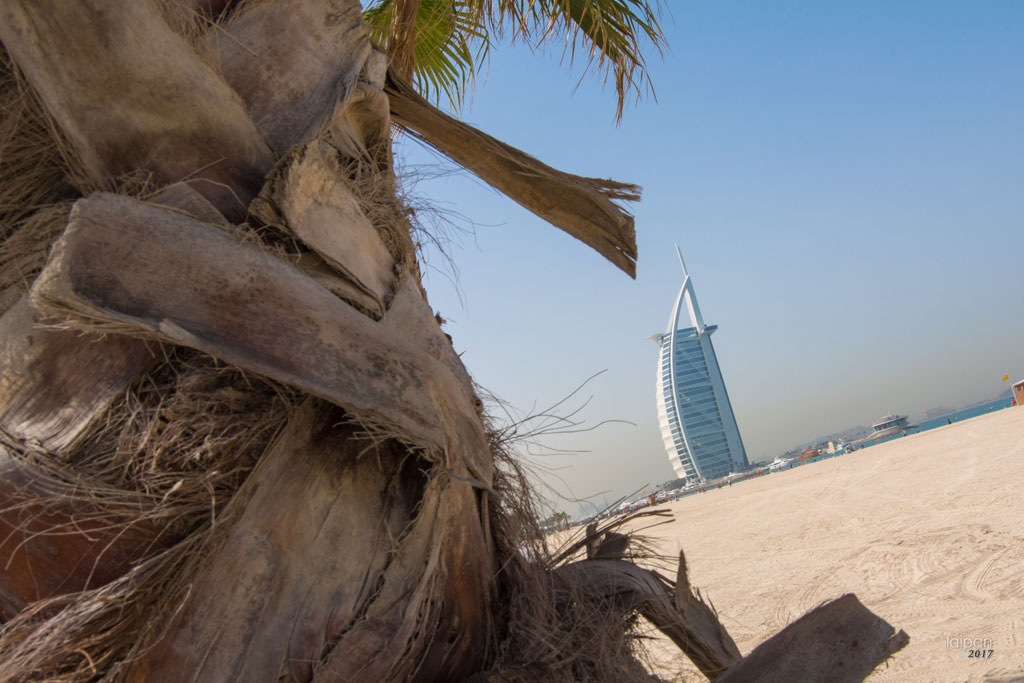 Hotel Burj Al Arab wyłania się zza palmy ;)