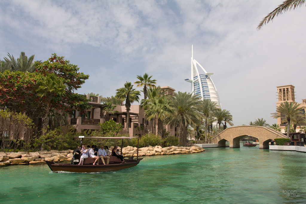 Souk Madinat Jumeirah - jest to centrum handlowe stylizowane arabską architekturą, z kanałami, oazą zieleni i luksusowym hotelem Burj Al Arab w tle