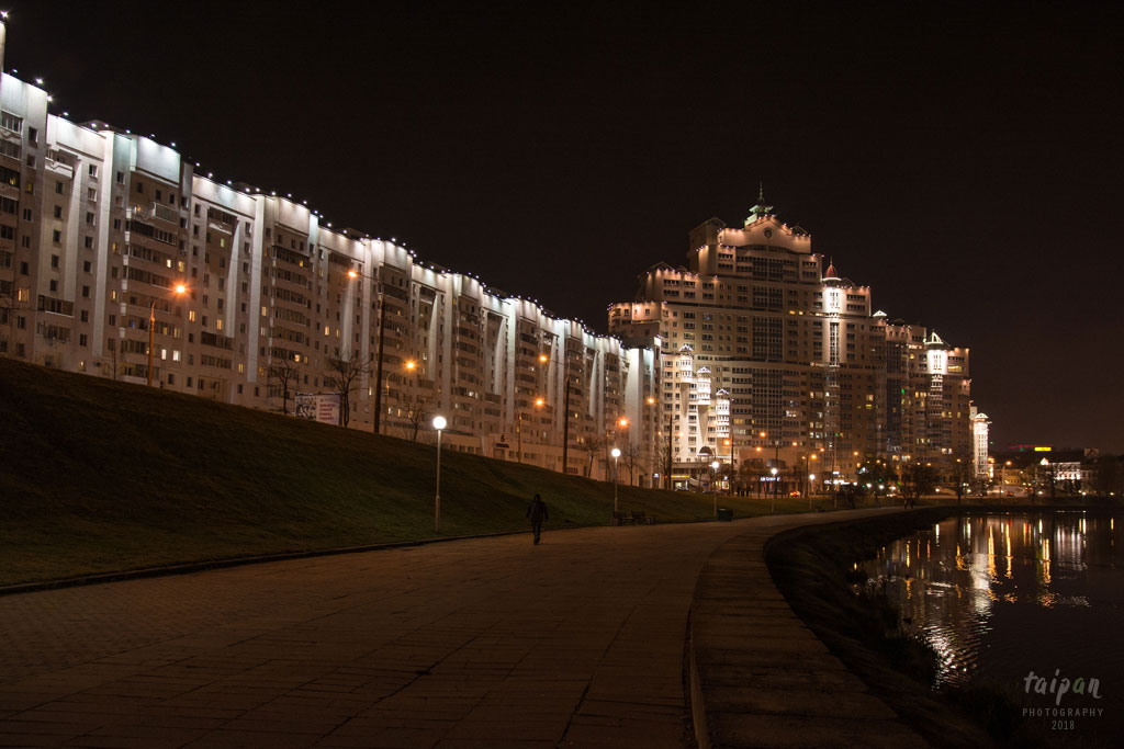 Majestatyczny, długi apartamentowiec nad rzeką Świsłocz