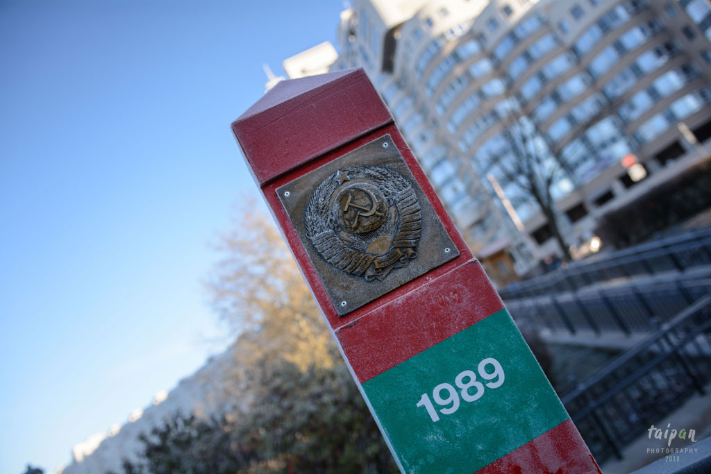 Słup graniczny z 1989 r. z napisem CCCP na moście obok Wyspy Łez