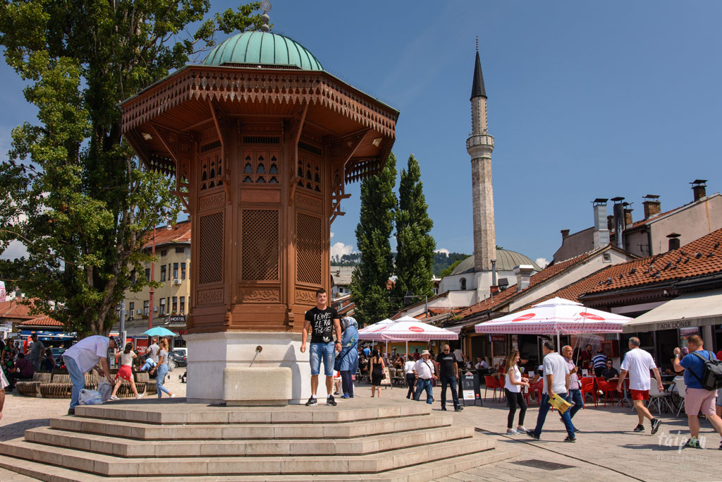 Sebilj - drewniana fontanna w stylu ottomańskim znajdująca się w centrum placu Baščaršija