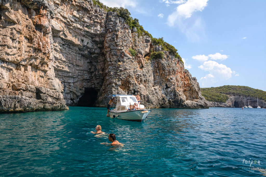 Turkusowe Morze Adriatyckie. W pobliżu znajduje się Niebieska Jaskinia.