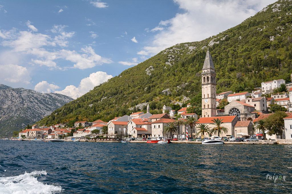 Panorama Perastu z kościołem pw. św. Mikołaja w tle