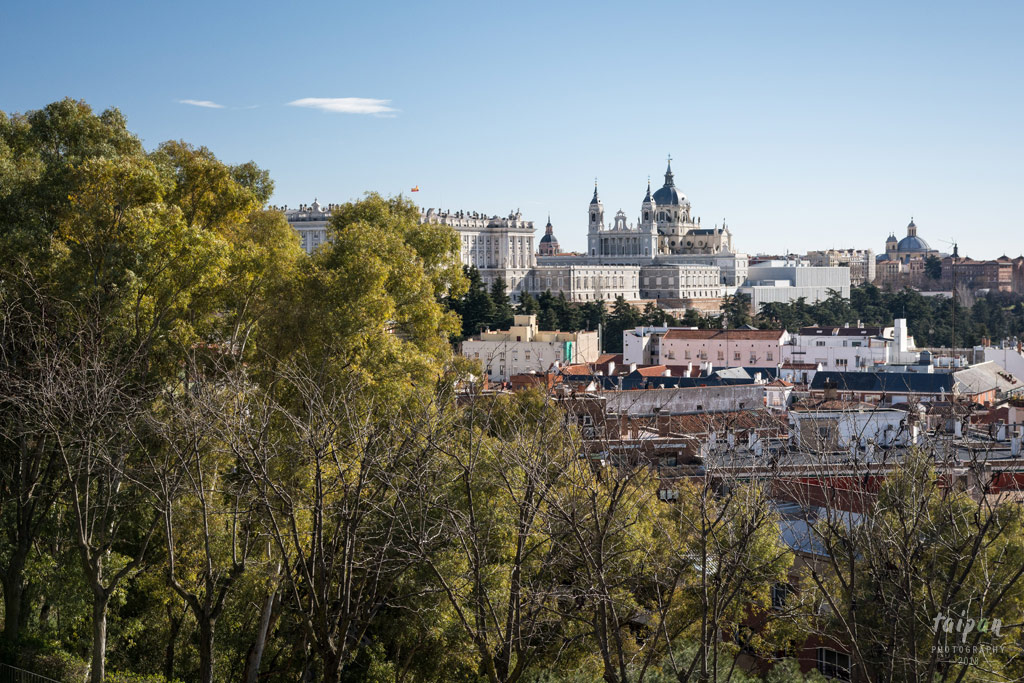 W tle gróruje Katedra Almudena