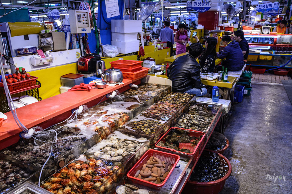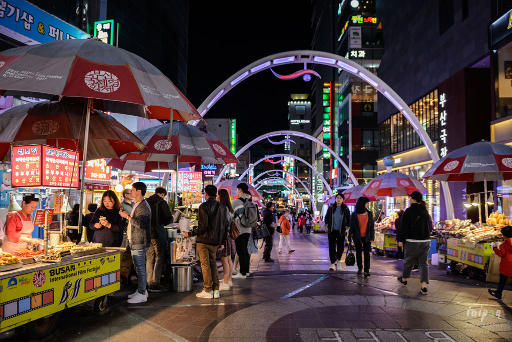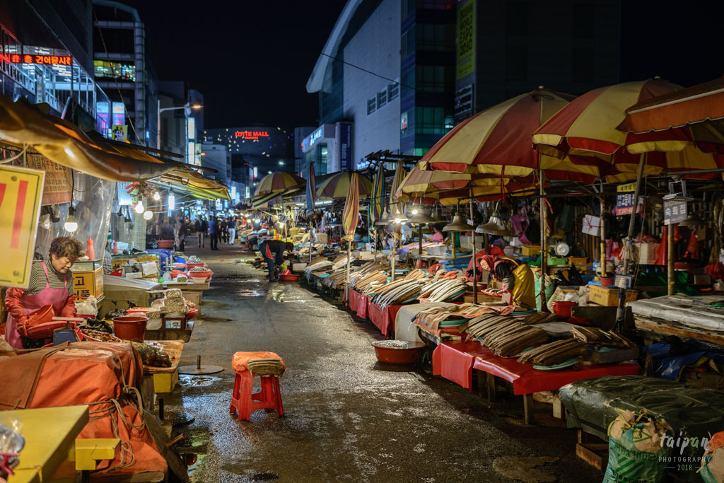 | Dzień 5 | Przylot około 14:00 z Hong Kongu do Pusan. Zakwaterowanie w hotelu w pobliżu stacji metra Seomyeon (po drodze kupno biletów autobusowych do Suncheon na następny dzień na stacji Busan West Bus Terminal). Zwiedzanie Pusanu: - przejazd do kolorowej dzielnicy Gamcheon Culture Village, - spacer do Jagalchi Market na świetny targ rybny, gdzie można spróbować bardzo świeżych owoców morza, - spacer po rozświetlonych i handlowych okolicach Gukje Market. |