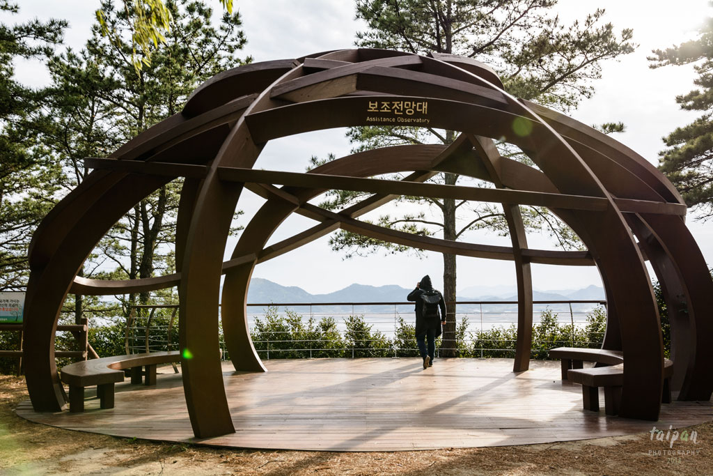 - ogrody Suncheon Bay Garden State i przejście świetnym mostem, - przejazd nadziemną kolejką do Suncheon Bay Waterland Reserve, - bardzo wietrzny spacer przez bagna w Suncheon Bay Waterland Reserve oraz męczące wejście na wzgórze z punktem obserwacyjnym, skąd rozpościera się piękny widok na rezerwat. |