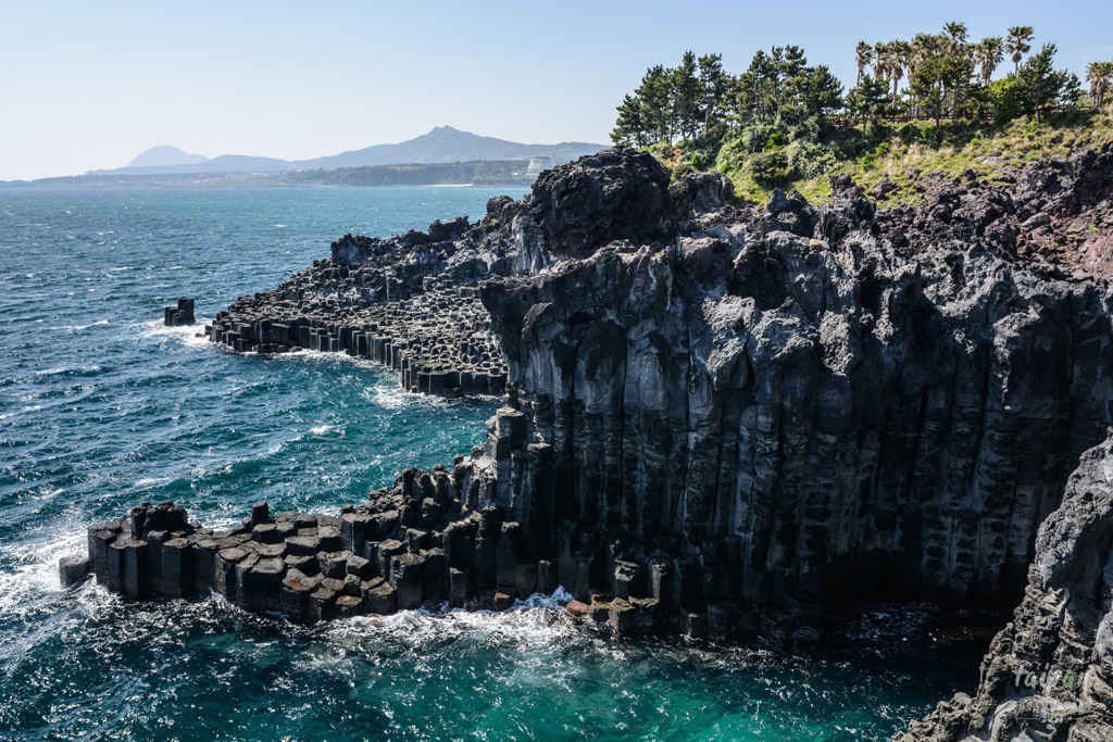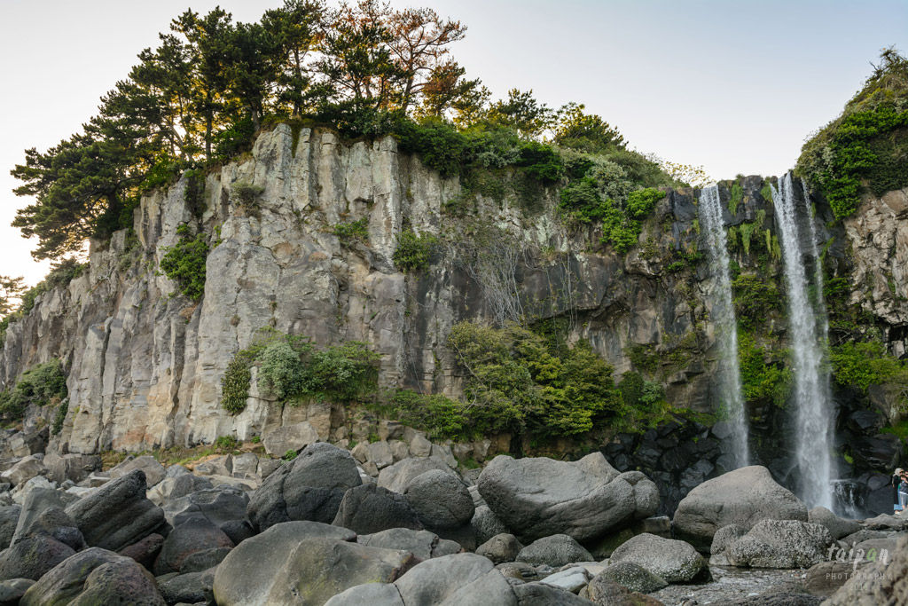 | Dzień 11 | Zwiedzanie południowej części wyspy: - Jusangjeollidae - klify z zastygłej gwałtownie lawy (przypominające bazalt), w pobliżu jest fajny park z palmami i figurkami, - długi przejazd wolnym autobusem do parku z wodospadem Cheonjiyeon, spacer po parku skąd widać w oddali wodospad. Wodospad można oglądać z bliska, ale trzeba zejść na dół i zapłacić. - spacer do wodospadu Jeongbang - jedynego wodospadu w Azji wpadającego do oceanu, - powrót do miasta Jeju i zakupy m.in. maseczek do testów. |
