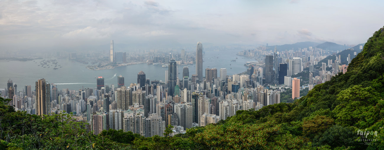Widok na miasto ze ścieżki Lugard Road na wzgórzu Wiktorii. Jedna z najpiękniejszych panoram miasta jakie widziałem do tej pory. W Hong Kongu znajduje się ponad 7840 wysokościowców, w tym ponad 1300 jest wyższa niż 100 m, a 316 z nich jest wyższa niż 150 m.