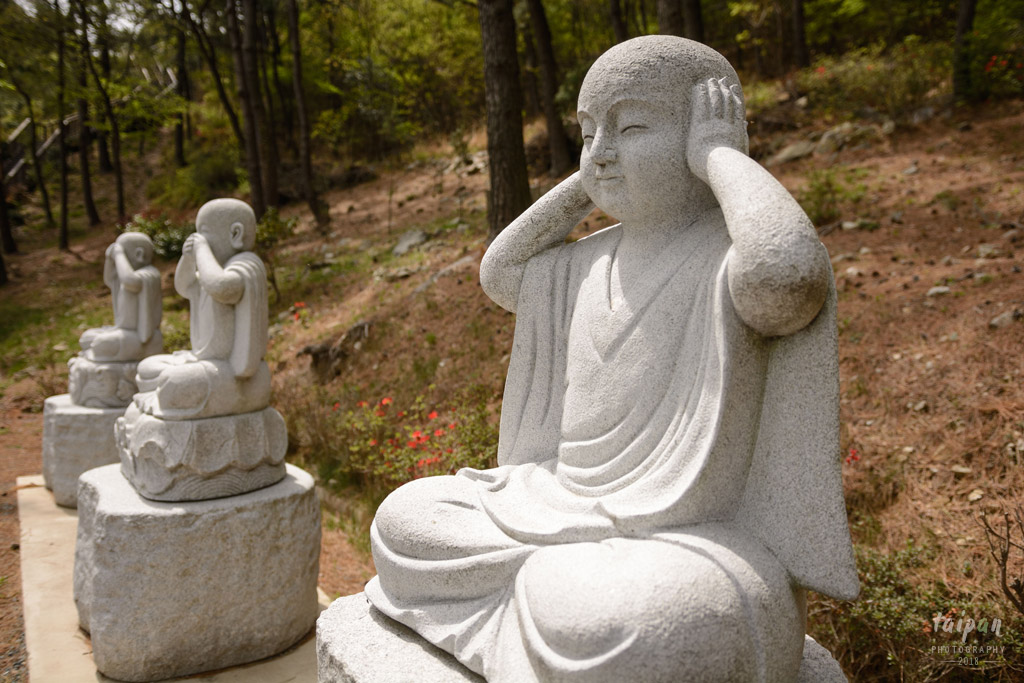 Buddy przedstawiające przysłowie "nie widzę nic złego, nie słyszę nic złego, nie mówię nic złego". Co można zinterpretować jako: „Nie szukaj i nie wytykaj błędnych czynów i słów innych ludzi”.