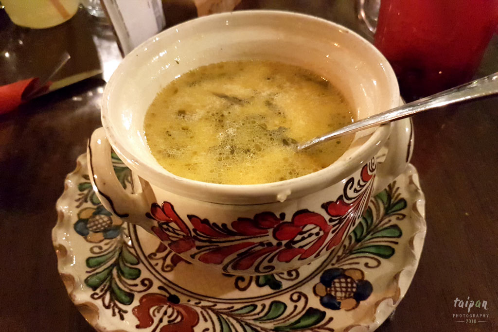 Zupa ciorba ardeleneasca, typowa dla Transylwanii, jest delikatna i bardzo dobra.
