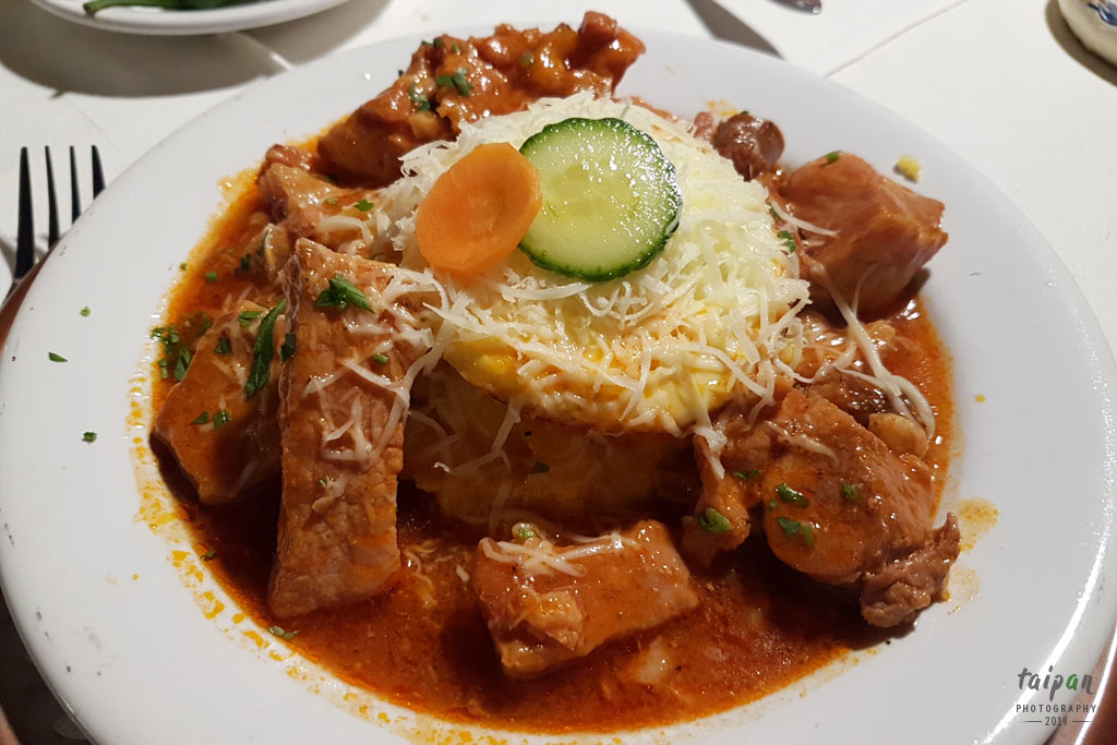Tochitura - tradycyjny rumuński gulasz z serem i jajkiem