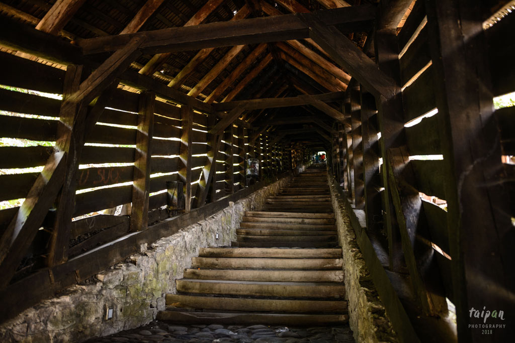 Schody z drewnianym zadaszeniem (scara acoperită) chroniące dzieci przed złą pogodą podążające do liceum. Zostały zbudowane w 1642 roku i początkowo miały 300 stopni, ale po zmianach w 1849 r. zostało tylko 175 stopni.